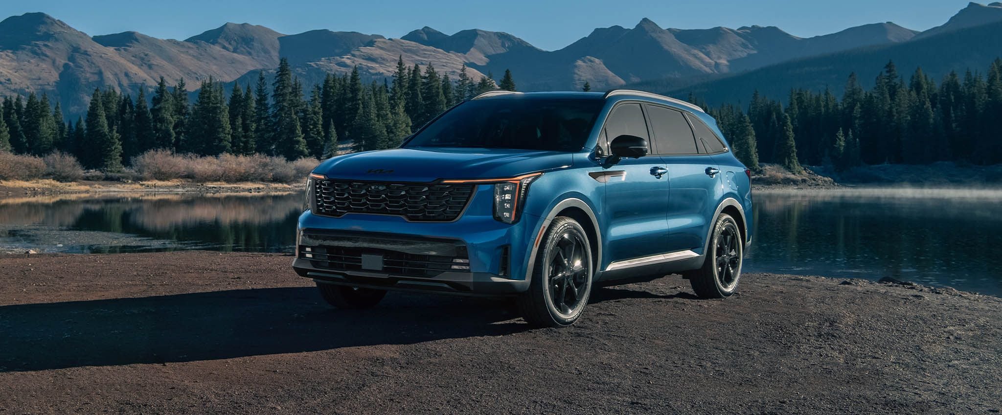 2026 Kia Sorento Hybrid SUVs are available in seven color options, including Mineral Blue, Cityscape Green, Volcanic Sand, Interstellar Gray, Steel Gray, Snow White Pearl, or Aurora Black Pearl.