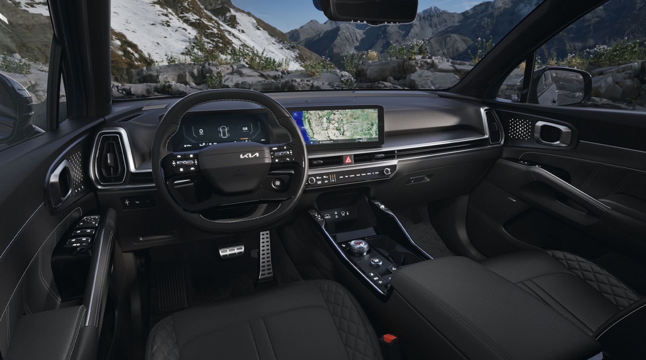 New Kia Sorento Hybrid SUVs help you stay connected no matter where life takes you, thanks to a standard 12.3-inch touchscreen with integrated navigation and support for wireless Apple CarPlay® and Android Auto™. In addition, the Kia Sorento Hybrid lineup is available with a 12-speaker Bose® Premium Audio System, 12.3-inch Dual Panoramic Displays, Full Display Digital Rearview Mirror®, Digital Key 2.0, and optional vehicle services from Kia Connect® that include Remote Start with Pre-Cooling and Heating.